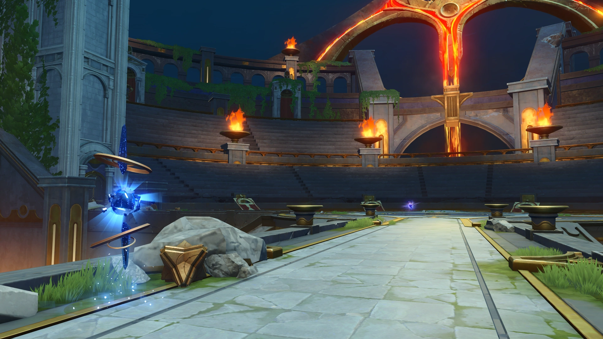Một lối đi hẹp dẫn đến bên ngoài Đấu Trường Kremnos, với tầm nhìn hạn chế vẫn có thể tưởng tượng ra cảnh tượng phân tranh vượt thời không ở phía bên kia võ đài. |