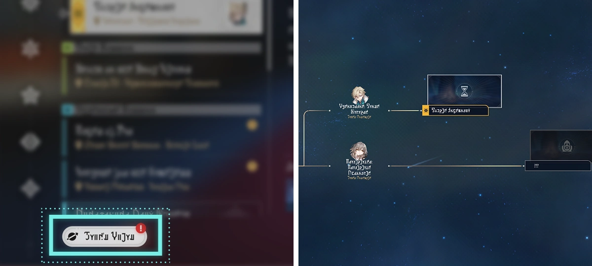 Nếu muốn chơi những nội dung bị hạn chế nêu trên, có thể vào "Hướng Dẫn Hành Tinh Hòa Bình", "Ký Sự Du Hành" và giao diện Nhiệm Vụ, nhấn nút nội dung tương ứng, đổi sang góc nhìn của nhân vật tương ứng để tiếp tục chơi.Nếu muốn chơi những nội dung bị hạn chế nêu trên, có thể vào "Hướng Dẫn Hành Tinh Hòa Bình", "Ký Sự Du Hành" và giao diện Nhiệm Vụ, nhấn nút nội dung tương ứng, đổi sang góc nhìn của nhân vật tương ứng để tiếp tục chơi.