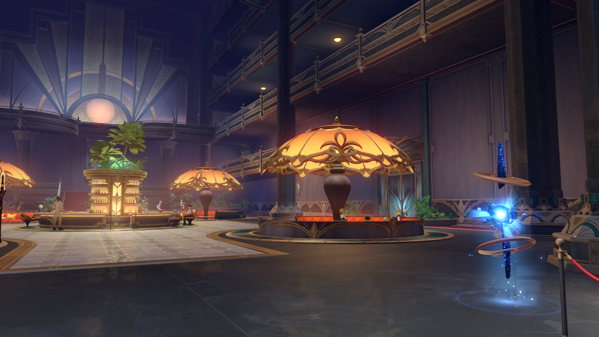 Đại sảnh làm thủ tục đăng ký nhận phòng, điểm đến đầu tiên trước khi bước vào Cõi Mộng. Mọi người đổ về đây với đủ loại người, đang chờ đợi để trải nghiệm giấc mơ sống động nhất. | |