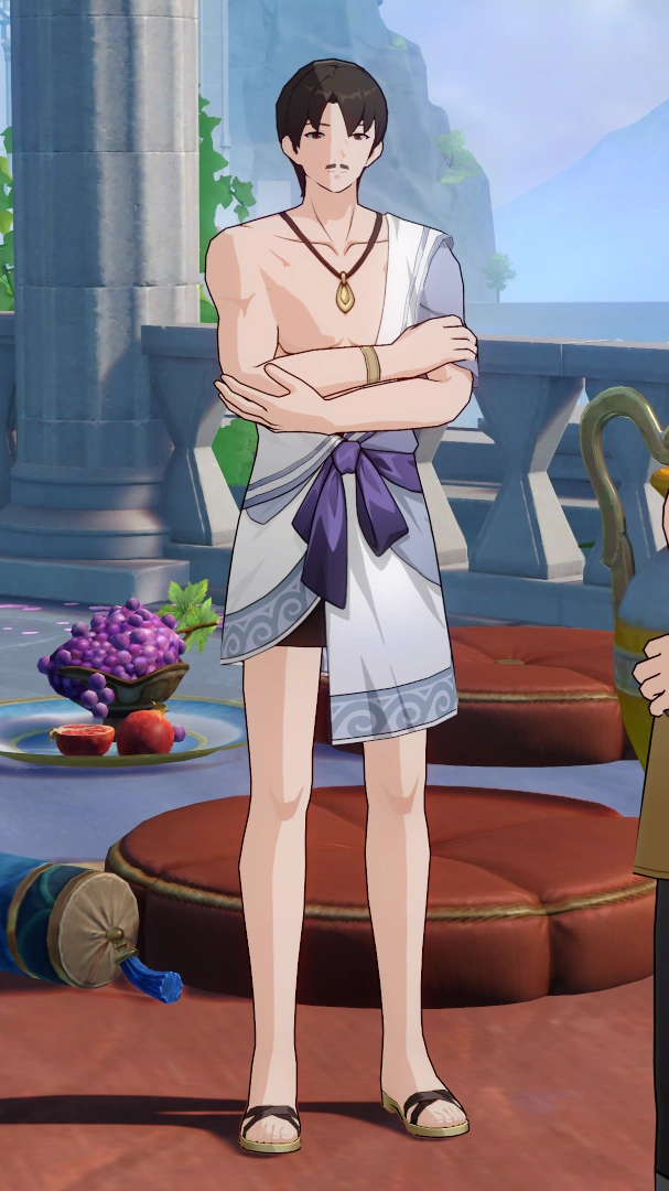 Bolaris is an NPC on Amphoreus, located in "Eternal Holy City" Okhema, "Fallen Twilight City" Okhema and Beyond Time: An Eternal Page.