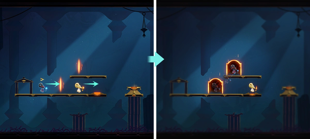 Watch out! If you step into a teleporter when the other you is stepping on the switch, the teleporter will remain activated, and the you who entered will be lost in an endless loop of space-time turbulence...Watch out! If you step into a teleporter when the other you is stepping on the switch, the teleporter will remain activated, and the you who entered will be lost in an endless loop of space-time turbulence...