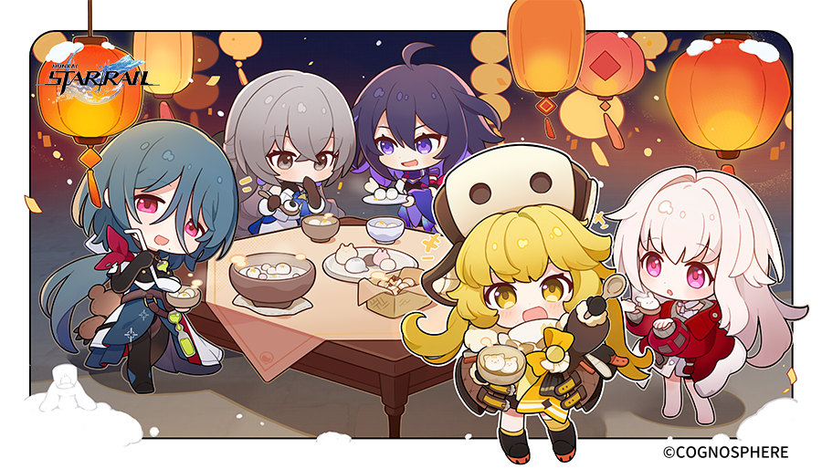 | Honkai: Star Rail Welcomes the Spring Festival: Joy "It's freshly made tangyuan with a black sesame paste filling~" "Mr... Mr. Tail, wait! They're super hot!" "The stall owner handed me this lantern with a smile. It's shape is rather familiar..." "Under the splendor of lights, the people are at peace and the scenery is bright... It appears that another good year is on the horizon." | |