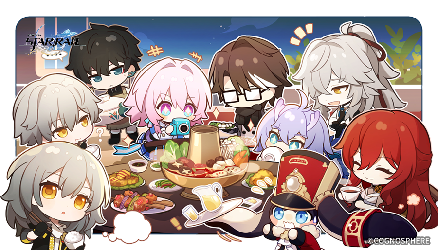 | HSR New Year — Gathering Today, we gather as is proper and sample delicacies together. "Hm, Ruan Mei. Your cooking lured all these little fellows out." "Is what drew them the fine food, or the 'atmosphere of reunions' in this room?" | |
