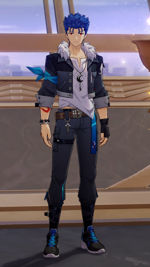 Lancer, real name Cú Chulainn,[2] is an mission exclusive NPC from Fate/stay night: Unlimited Blade Works, introduced as a collaboration and crossover character between TYPE-MOON, ufotable, and HoYoverse.