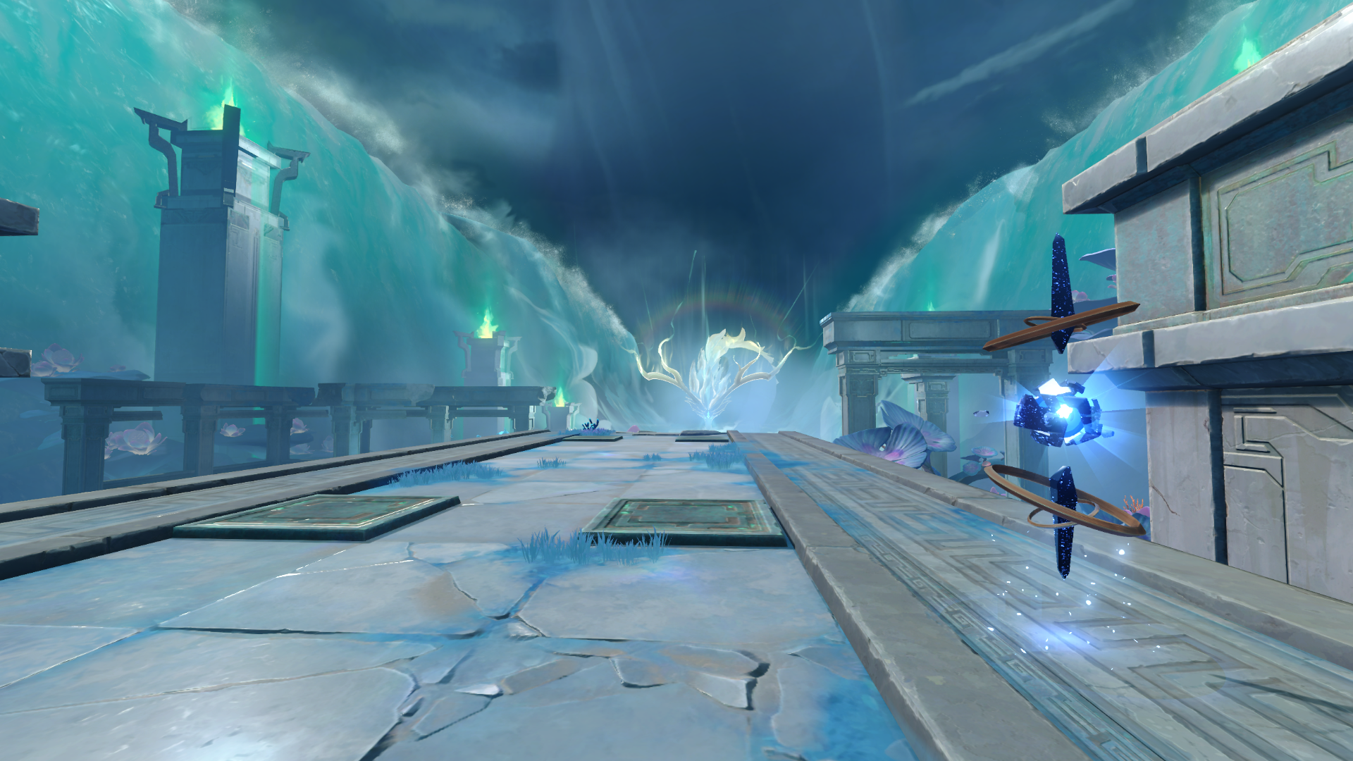The roots of the Ambrosial Arbor are sealed underwater here, a feat first undertaken by Yubie, the 91st incarnation of Imbibitor Lunae.[2] Though Yubie was praised for quelling the Arbor, many Vidyadhara loathed this positive depiction of him: from their perspective, he offered up the precious sacred realm from their hometown and the Ichor Lines they took pride in all for the sake of staying with the Alliance.[3]
