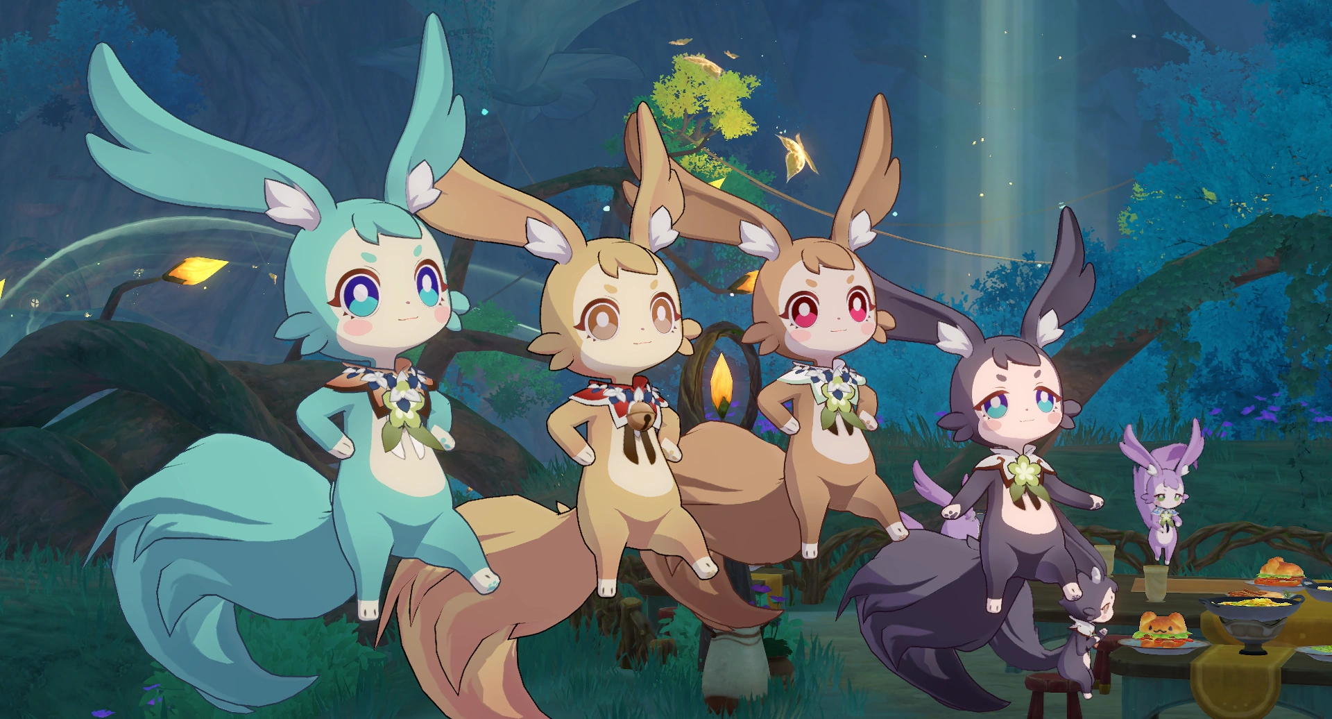 The Five Gourmet Overlords are a group of four fairies covering three of the five tastes (sweet, sour, and salty) as well as "spice." They formed sometime around the events of Event Adventure Mission series The Chrysos Maze Grand Restaurant, after Hysilens helped them "clear their backlog of fruits." The four fairies misheard her saying "the deep sea accepts all goods," misconstruing it as "food will always find a way," and forging an identity from it.[1]
